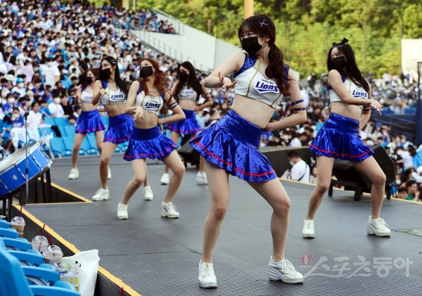 11일 대구 삼성라이온즈파크에서 ‘2022 신한은행 SOL KBO리그’ 삼성 라이온즈와 NC 다이노스의 경기가 열렸다. 삼성 치어리더가 화려한 공연을 선보이고 있다.