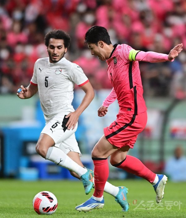 14일 서울월드컵경기장에서 열린 ‘하나은행 초청 축구국가대표팀 친선경기’ 한국과 이집트의 경기에서 한국 손흥민이 드리블 돌파하고 있다.