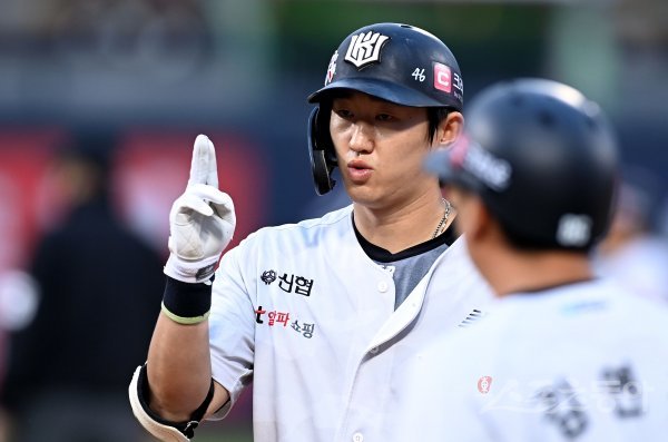 15일 경기도 수원 kt위즈파크에서 ‘2022 신한은행 SOL KBO리그’ kt 위즈와 SSG 랜더스의 경기가 열렸다. 3회말 무사 1, 3루에서 kt 김민혁이 1타점 적시타를 날린 후 세리머니를 펼치고 있다.