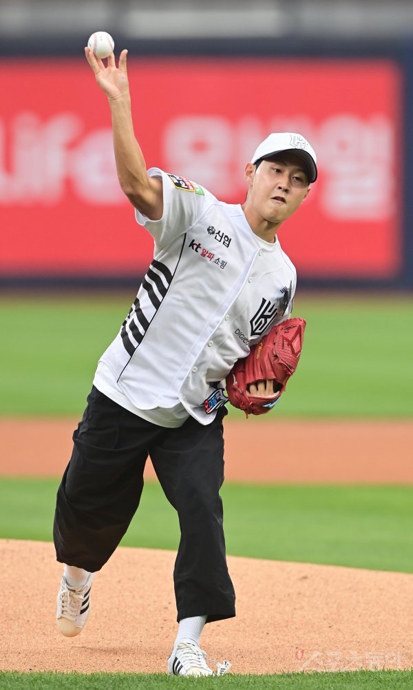 22일 경기도 수원KT위즈파크에서 열린 ‘2022 신한은행 SOL KBO리그’ KT 위즈와 NC 다이노스의 경기에 앞서 마요르카 이강인이 시구를 하고 있다.
