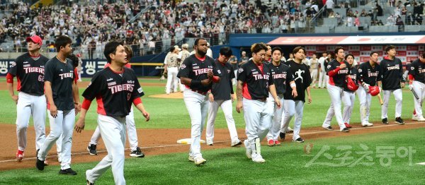 30일 서울 고척스카이돔에서 ‘2022 신한은행 MY CAR KBO리그’ KIA 타이거즈와 키움 히어로즈 경기가 열렸다. 4-5로 패하며 4연패에 빠진 KIA 선수들이 그라운들 빠져나가고 있다.