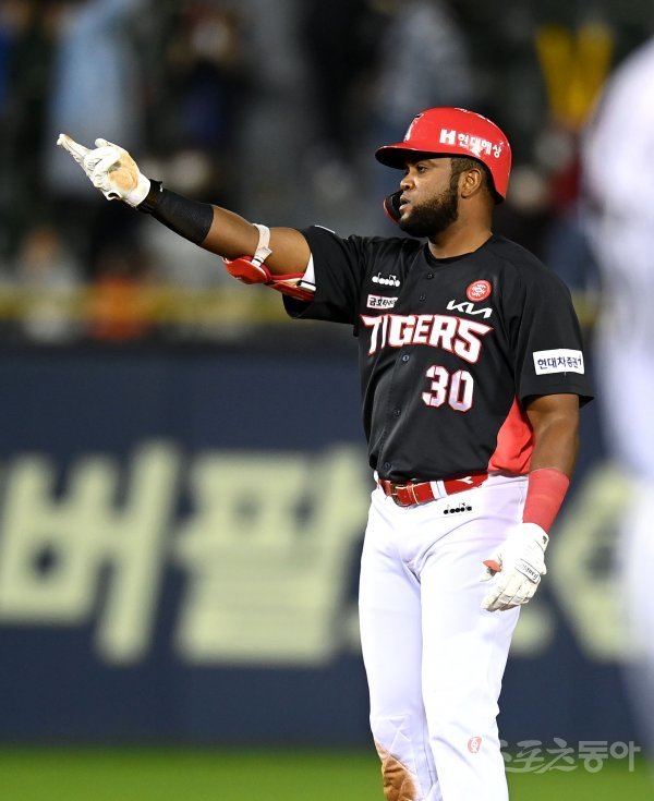 4일 서울 잠실야구장에서 ‘2022 신한은행 MY CAR KBO리그’ KIA 타이거즈와 LG 트윈스 경기가 열렸다. 1회초 1사 2,3루 KIA 소크라테스가 선제 2타점 우전 2루타를 치고 2루에서 기뻐하고 있다.