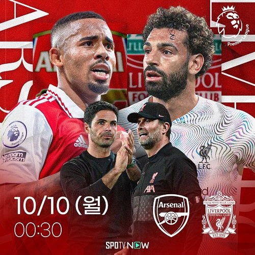 아스날과 리버풀 경기는 10일 월요일 새벽 0시 30분 스포티비 온(SPOTV ON)과 스포티비 나우(SPOTV NOW)에서 독점 생중계된다.