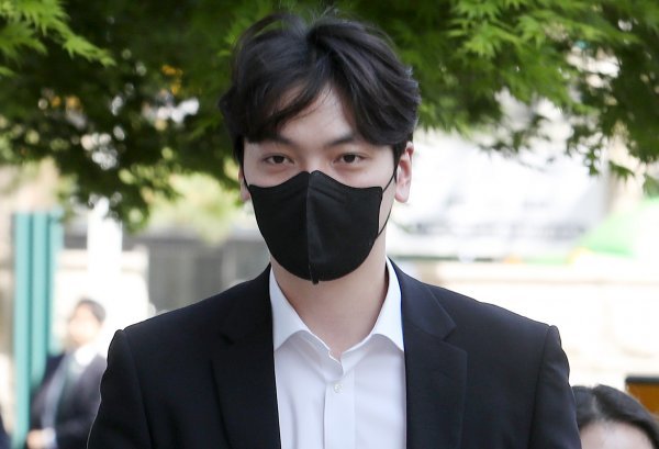 허위 뇌전증 진단으로 병역 면탈 혐의를 받는 프로배구 선수 조재성이 19일 오전 서울 양천구 서울남부지방법원에서 열린 공판에 출석하고 있다.