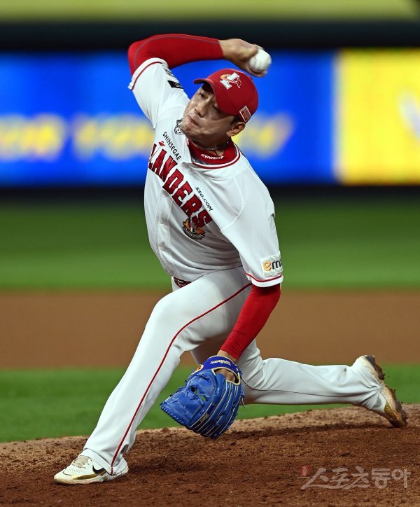 30일 인천 SSG 랜더스필드에서 ‘2023 신한은행 SOL KBO리그’ SSG 랜더스와 삼성 라이온즈의 경기가 열렸다. 9회초 무사에서 SSG 마무리 서진용이 구원 등판해 볼을 던지고 있다.