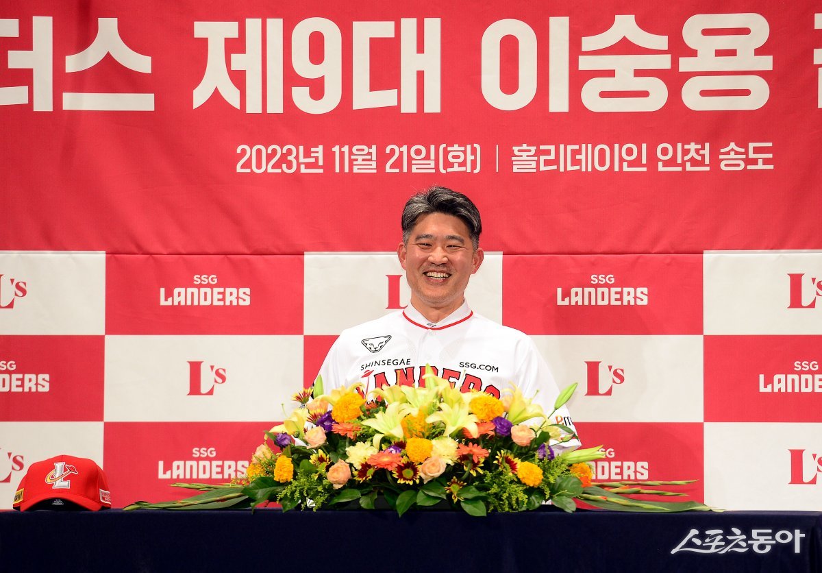 21일 인천 연수구 홀리데이인 인천 송도에서 SSG랜더스 제9대 이숭용 감독 취임식이 열렸다. SSG 이숭용 신임 감독이 취임 소감을 밝히고 있다.