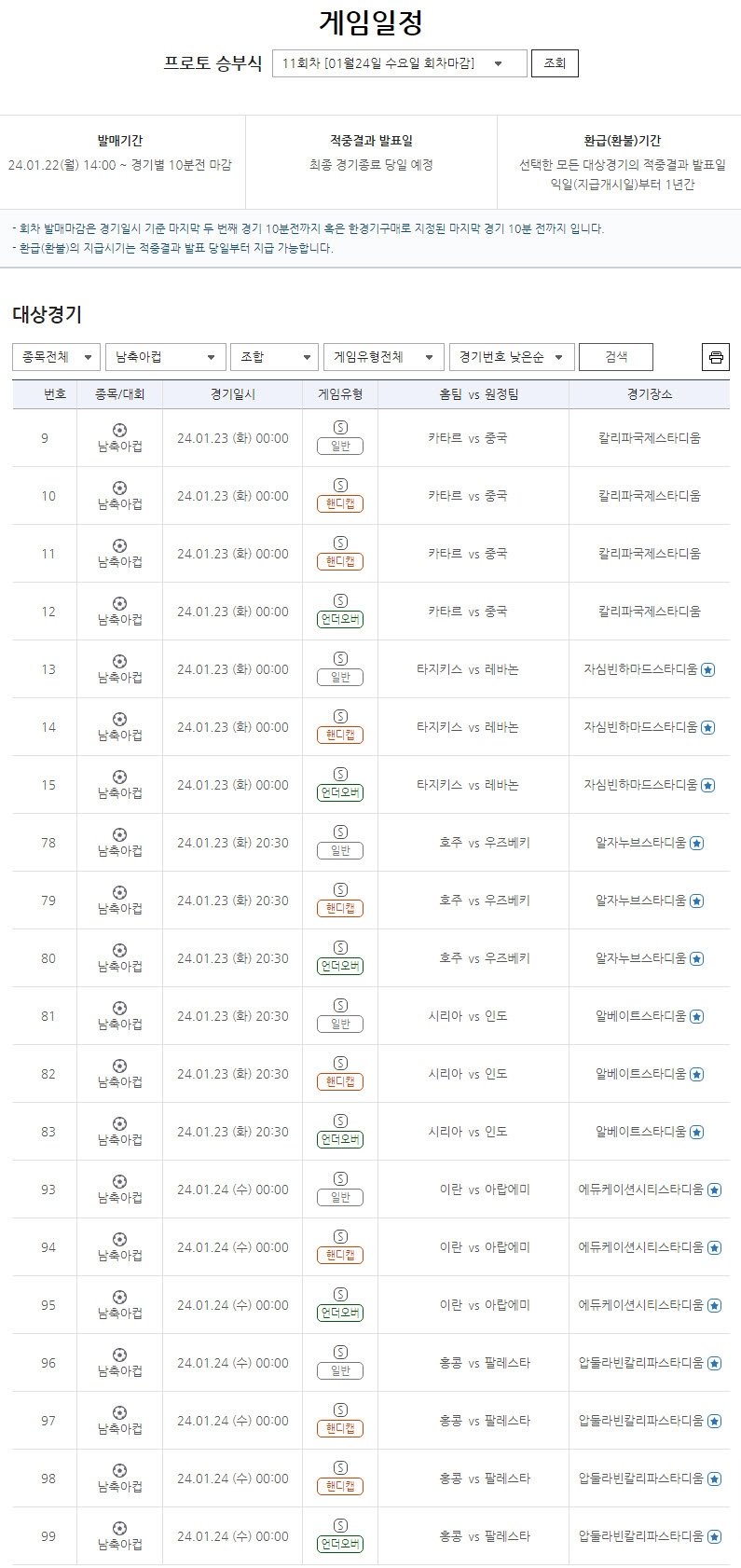프로토 승부식 11회차는 22일(월) 오후 2시부터 발매 개시