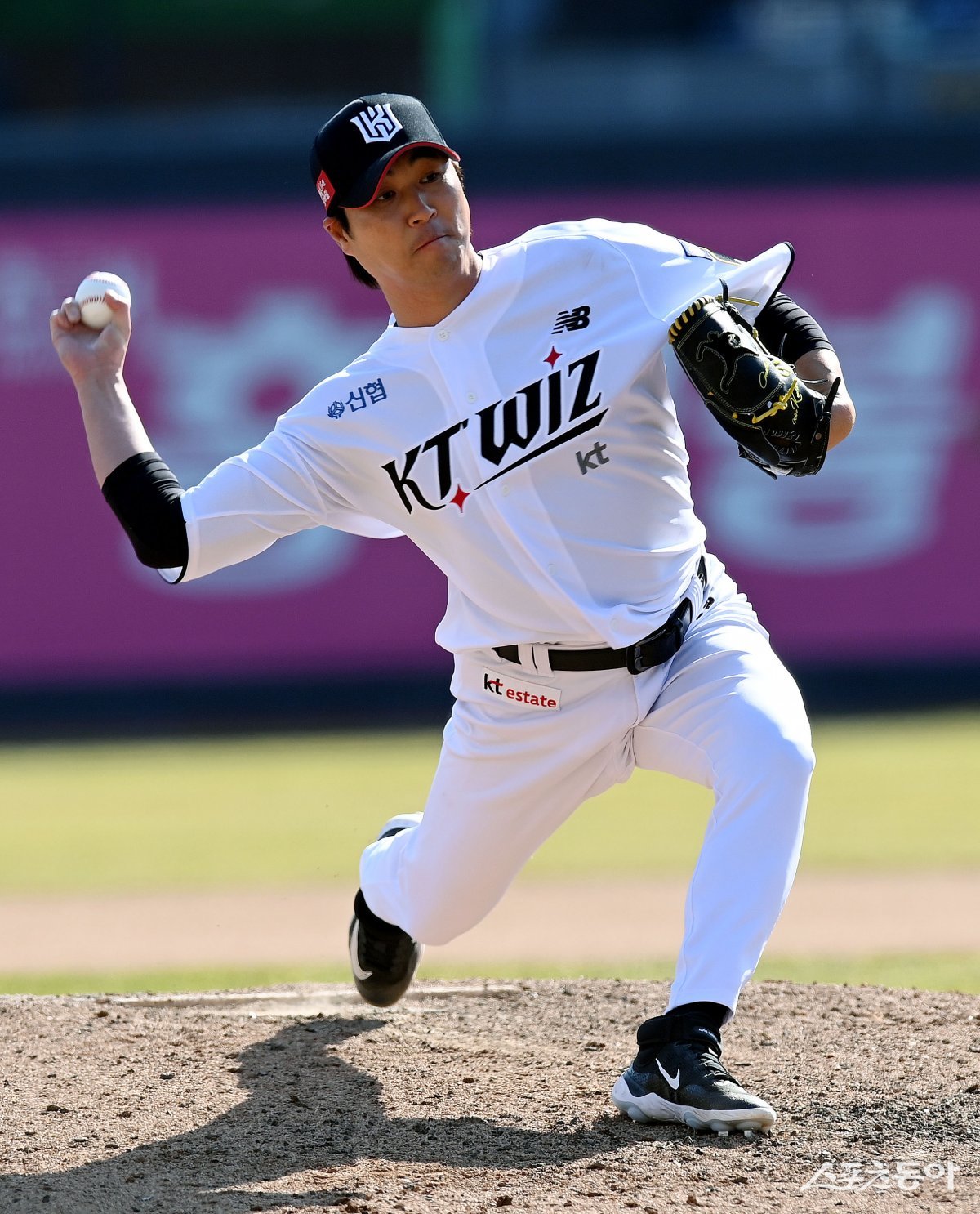 10일 경기도 수원 KT위즈파크에서 ‘2024 신한 SOL 뱅크 KBO리그’ KT 위즈와 LG 트윈스의 시범경기가 열렸다. 8회초 무사에서 KT 우규민이 구원 등판해 볼을 던지고 있다.