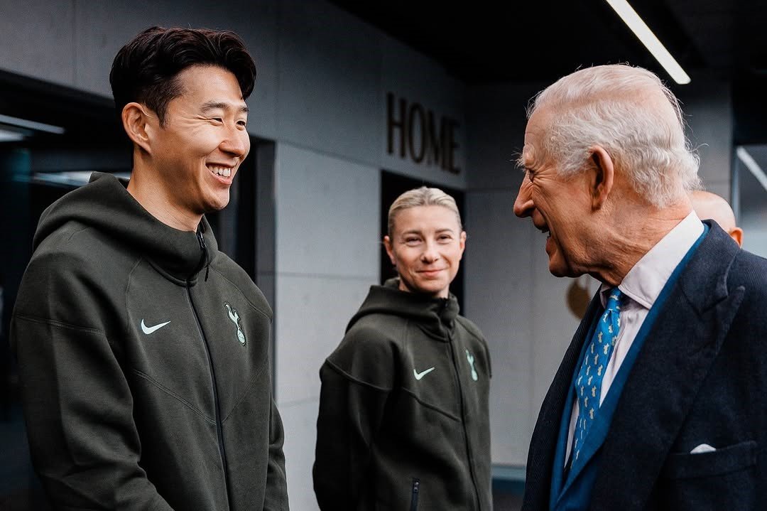 토트넘은 13일(한국시간) 구단 소셜미디어(SNS) 등 자체 채널을 통해 손흥민과 찰스 3세가 웃으며 대화하는 사진과 영상을 띄우며 “찰스 3세가 전날(12일) 런던 토트넘 홋스퍼 스타디움을 방문했다”고 밝혔다. 영국 왕실도 두 사람이 함께 찍힌 사진을 주요 소식으로 다뤘다.
