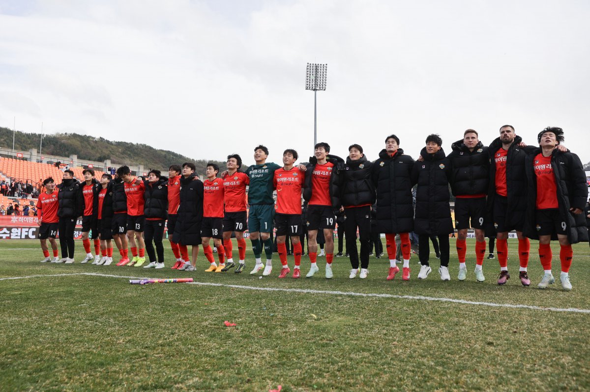 강원FC의 ACLE 승리 세리머니를 춘천송암스포츠타운에서도 볼 수 있을까. 강원과 춘천시는 2025~2026 ACLE 홈경기 개최 논의를 이어가고 있으나 아직 뚜렷한 진전이 없다. 사진제공|한국프로축구연맹