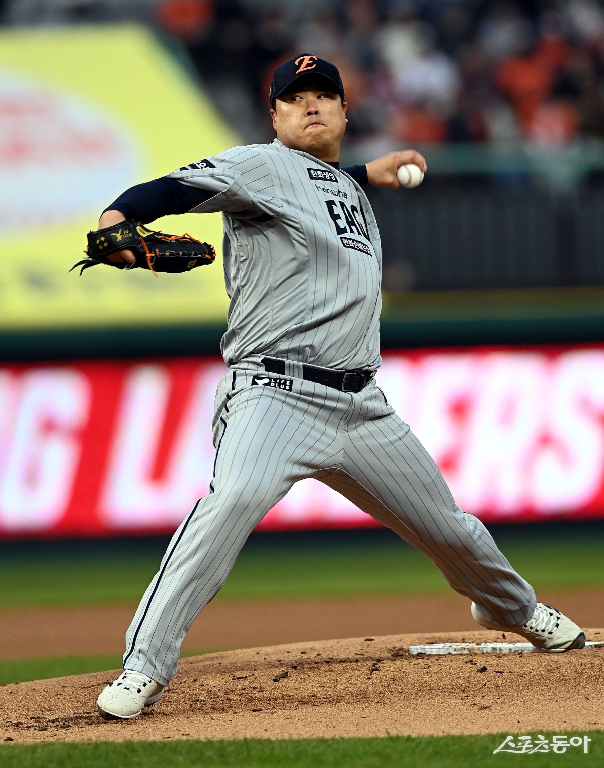한화 류현진이 17일 인천SSG 랜더스필드에서 열린 SSG와 원정경기에 선발등판해 역투하고 있다. 한화는 SSG를 4-2로 꺾으며 올 시즌 첫 3연전 스윕을 달성했다. 인천|김민성 기자 marineboy@donga.com