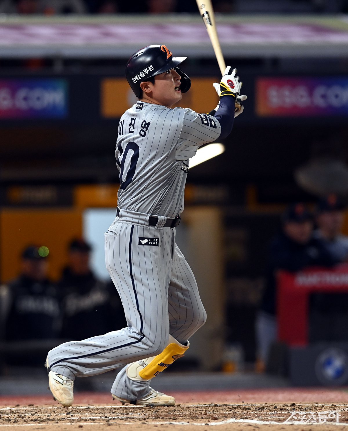 이진영은 11일 고척스카이돔에서 열린 ‘2025 신한 SOL 뱅크 KBO리그’ 키움 히어로즈와 원정경기에 6번타자 우익수로 선발출전해 6회초 3번째 타석에서 시즌 4호 홈런을 쳐냈다.