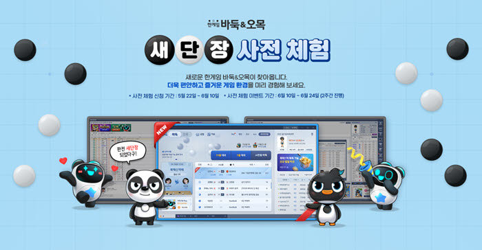 NHN의 PC 웹보드 게임 ‘한게임 바둑&오목’이 17년 만의 대국실 전면 리뉴얼을 앞두고 사전 체험자 모집을 시작했다. ‘한게임 바둑&오목’은 2008년 출시돼 현재까지 사랑받고 있는 NHN의 대표 웹보드 게임 중 하나다. 이번 리뉴얼에선 고연령층 이용자도 불편함 없이 쉽게 적응할 수 있는 신규 사용자환경(UI)·사용자경험(UX) 디자인을 선보일 계획이다.