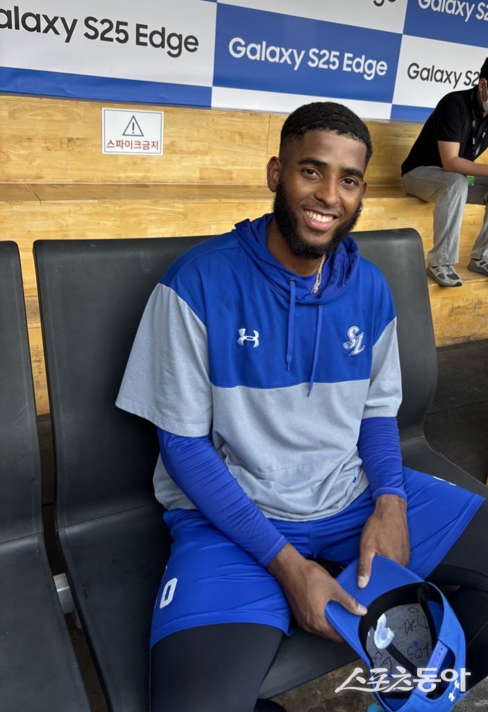 삼성 디아즈가 27일 대구삼성라이온즈파크에서 인터뷰를 마친 뒤 활짝 웃고 있다. 대구ㅣ강산 기자 posterboy@donga.com