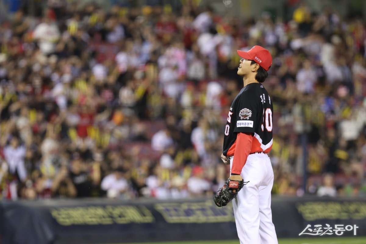 그는 팀이 11-2로 앞선 9회말 마운드에 올랐다. 선두타자 김민석에게 볼넷을 내줘 불안하게 출발했지만, 이선우를 중견수 뜬공으로 처리해 첫 번째 아웃카운트를 잡았다. 후속 김동준 타석에서 중전 안타를 맞아 1사 1·3루에 몰렸고, 박준순에게 희생플라이를 내줘 1실점 했다. 2사 후에는 대타 김인태를 루킹 삼진으로 잡아내 경기를 끝냈다. 마지막 아웃카운트를 잡아낸 뒤 감격한 듯 팬들로 메워진 관중석 이곳저곳을 눈에 담는 장면이 중계에 잡혔다.
