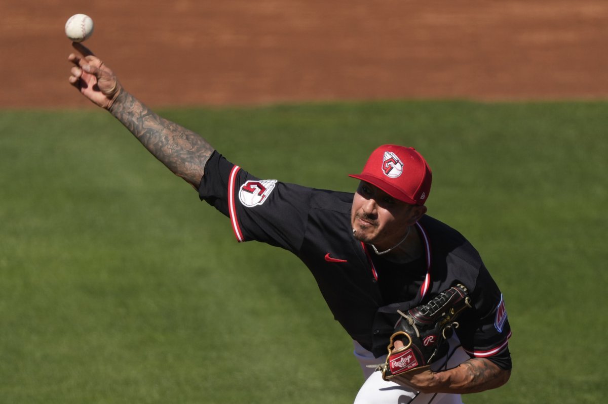 롯데가 터커 데이비슨의 대체 외국인투구로 영입한 빈스 벨라스케즈가 클리블랜드 시절 스프링 트레이닝 연습경기 도중 역투하고 있다. 굿이어(미 애리조나주)|AP뉴시스