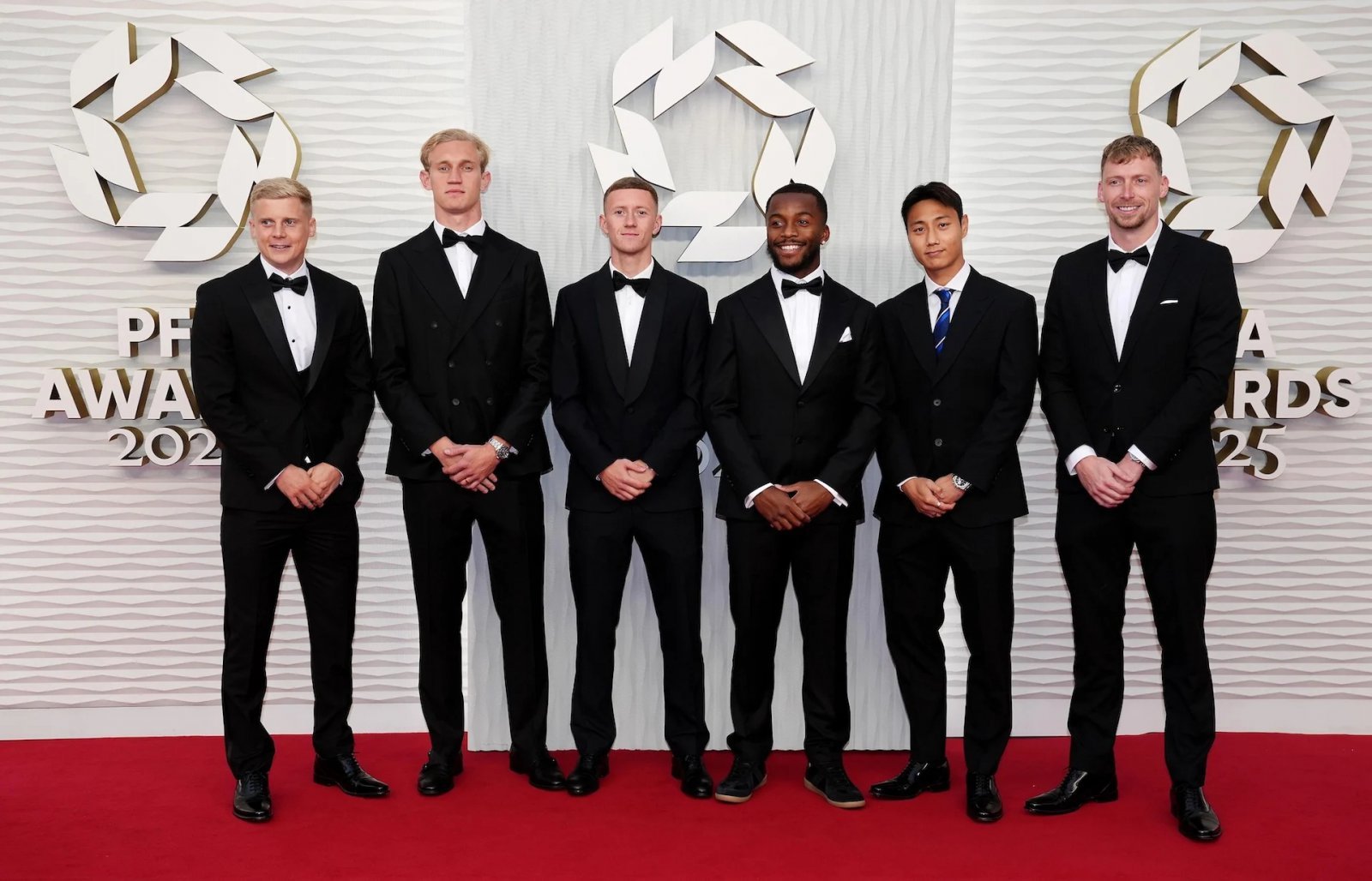 PFA 20일(한국시간) 2024~2025시즌 잉글랜드 리그1 올해의 팀을 선정했다. 올해의 팀 11인 중 대부분의 선수는 버밍엄 선수들로 채워졌다. 백승호(오른쪽 2번째)는 미드필더 부문에 선정돼 지난 시즌 활약을 인정받았다. 사진출처|PFA 홈페이지