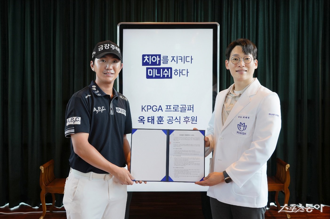 옥태훈은 19일 서울 강남구 언주로에 있는 미니쉬치과병원 본관 14층 라운지에서 열린 협약식에서 미니쉬치과병원과 치아 건강 부문 후원 계약을 맺고, 하반기 KPGA 대회부터 오른쪽 어깨에 미니쉬 패치를 부착한 유니폼을 착용하고 출전키로 했다.