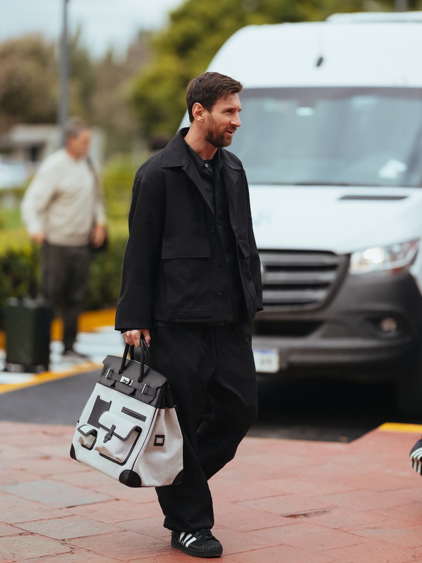 아르헨티나 축구대표팀 주장 리오넬 메시가 베네수엘라, 에콰도르와 2026북중미월드컵 남미예선 2경기를 준비하기 위해 1일 에제이자 훈련센터에 도착해 여유로운 미소를 짓고 있다. 사진출처|아르헨티나축구협회 페이스북