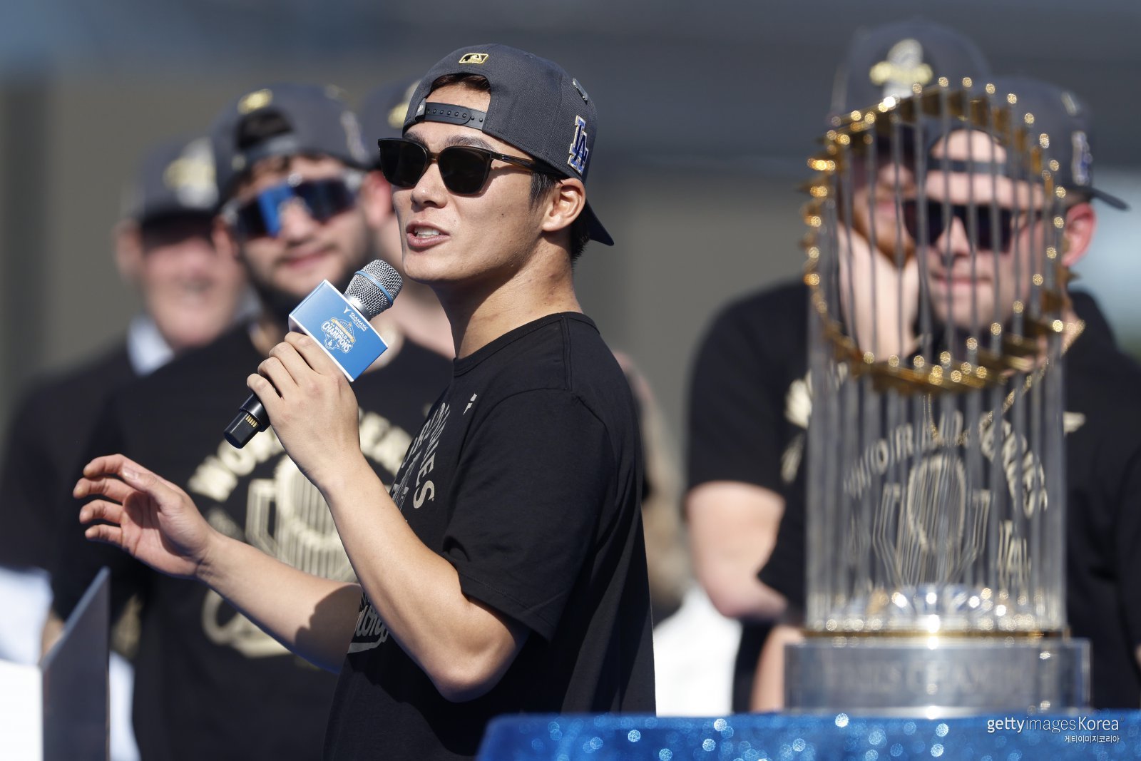 이후 LA 다저스 선수단은 홈구장 다저 스타디움으로 향했고, MVP 야마모토가 마이크를 잡았다. 야마모토는 “Losing isn‘t an option”이라 말했다.