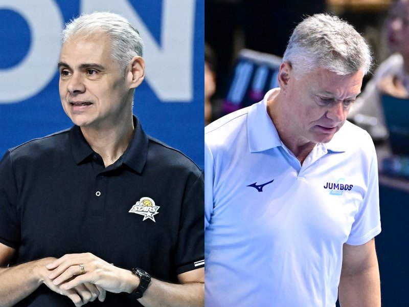 KB손해보험과 대한항공은 25일 오후 2시 의정부 경민대기념관에서 열릴 ‘진에어 2025~2026 V리그’ 남자부 3라운드를 치른다. KB손해보험 레오나르도 카르발류 감독(왼쪽)과 대한항공 헤난 달 조토 감독. 사진제공|KOVO