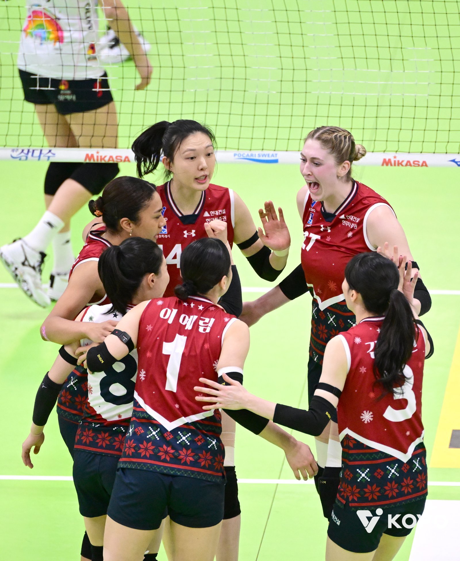 외국인 주포 카리 가이스버거(등록명 카리)가 19득점, 아시아쿼터 자스티스 야구치가 14득점을 올린 가운데 베테랑 미들블로커(센터) 양효진이 블로킹 5개 포함 14득점으로 거들어 연승에 힘을 보탰다. 정관장은 외국인 공격수 엘리사 자네테가 28득점, 미들블로커 콤비 정호영과 박은진이 각각 16득점, 12득점을 올렸으나 한끗이 부족했다.