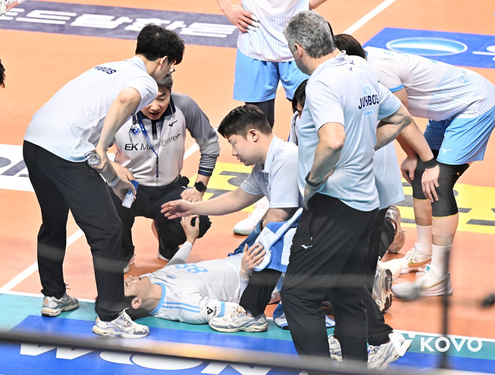 대한항공은 28일 우리카드와 홈경기에서 3-1 승리를 거뒀으나, 고민은 더 깊어졌다. 정지석의 대체로 투입된 임재영(27)마저 부상으로 쓰러졌다. 3세트 도중 점프 착지 과정에서 왼쪽 무릎을 다쳤고, 검진 결과 반월상 연골판 손상이 확인됐다. 수술과 재활 여부를 두고 추가 진료를 받을 예정이다. 만약 수술대에 오른다면 사실상 시즌 아웃에 가깝다.