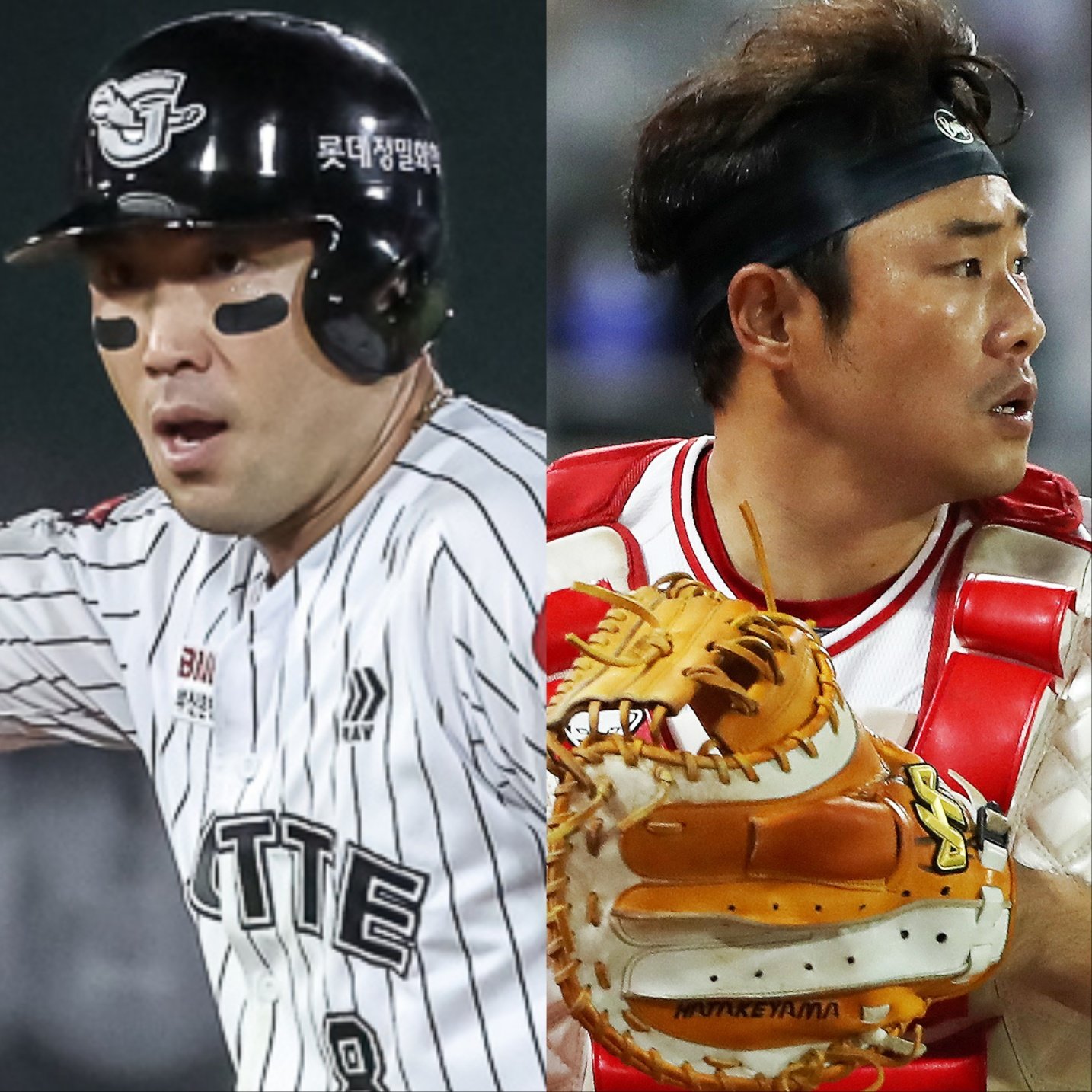 롯데 전준우(왼쪽)와 SSG 이지영은 1986년생으로 올해 40대에 접어들었다. 둘은 경쟁력을 유지하며 베테랑으로서 자존심을 지키려 한다. 사진제공|롯데 자이언츠·SSG 랜더스