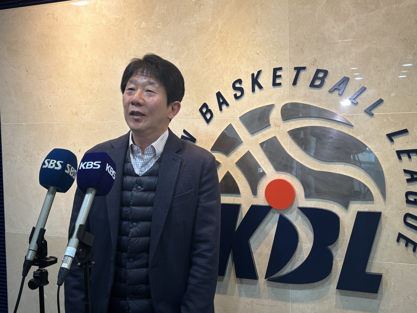 박철효 가스공사 부단장이 13일 신사동 KBL센터에서 열린 제31기 제8차 재정위원회에서 소명을 마친 뒤 취재진에게 입장을 전하고 있다. 강산 기자 posterboy@donga.com