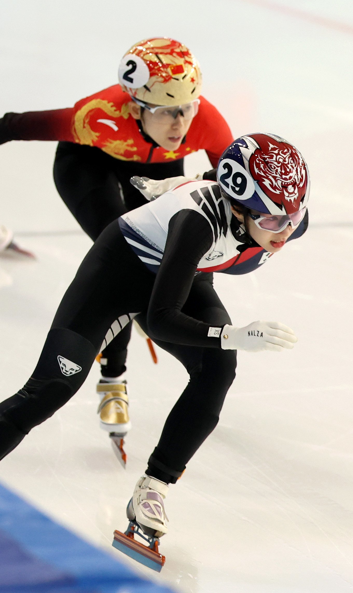 33세에 처음 올림픽 무대를 밟는 여자쇼트트랙대표팀 맏언니 이소연(앞)은 밀라노·코르티나담페초올림픽을 통해 시야를 더 넓히겠다는 소망을 전했다. 뉴시스