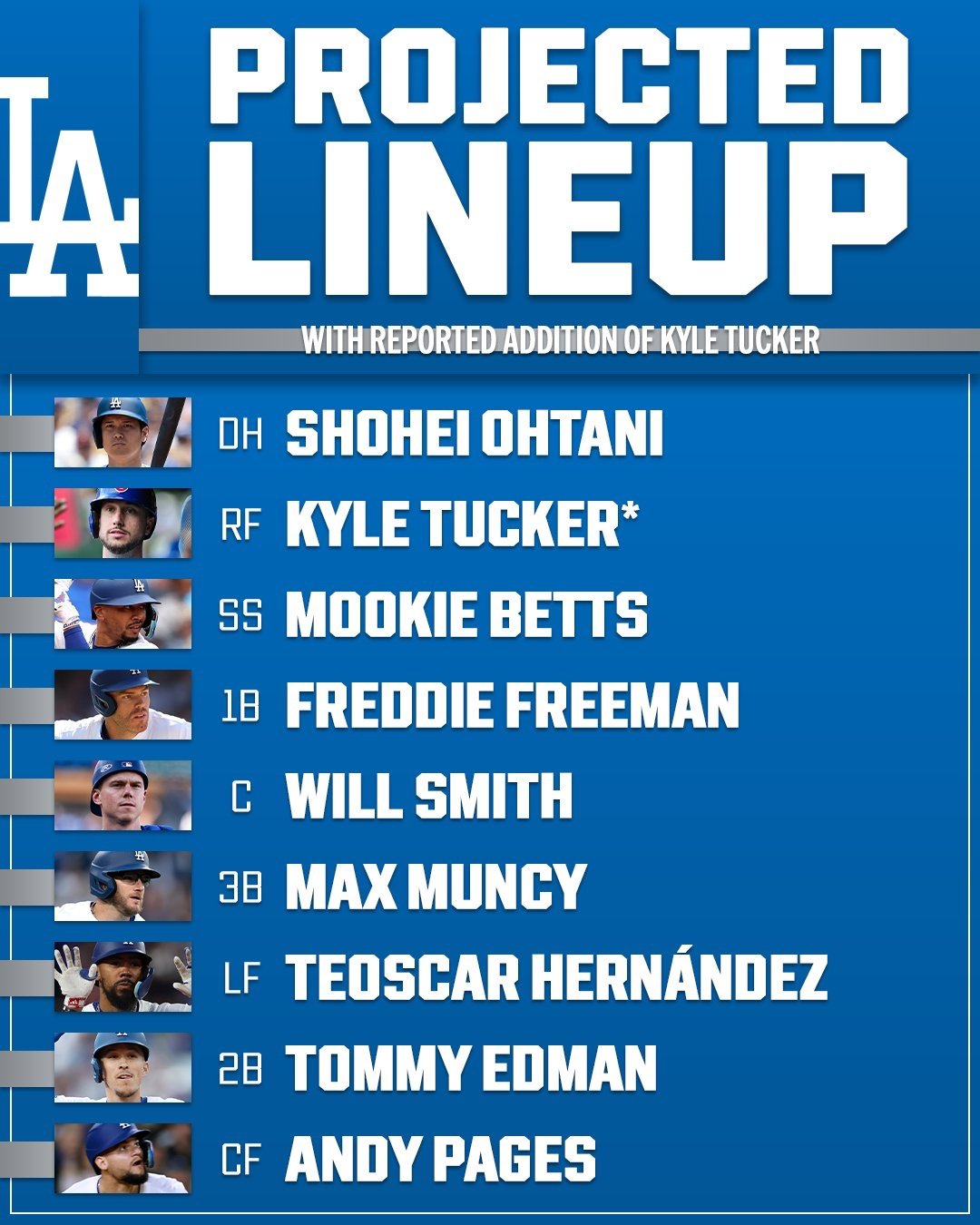 미국 MLB 네트워크는 16일(이하 한국시각) LA 다저스의 2026시즌 예상 선발 라인업을 발표했다. 상대 투수들을 공포로 몰아넣을 수 있는 수준.