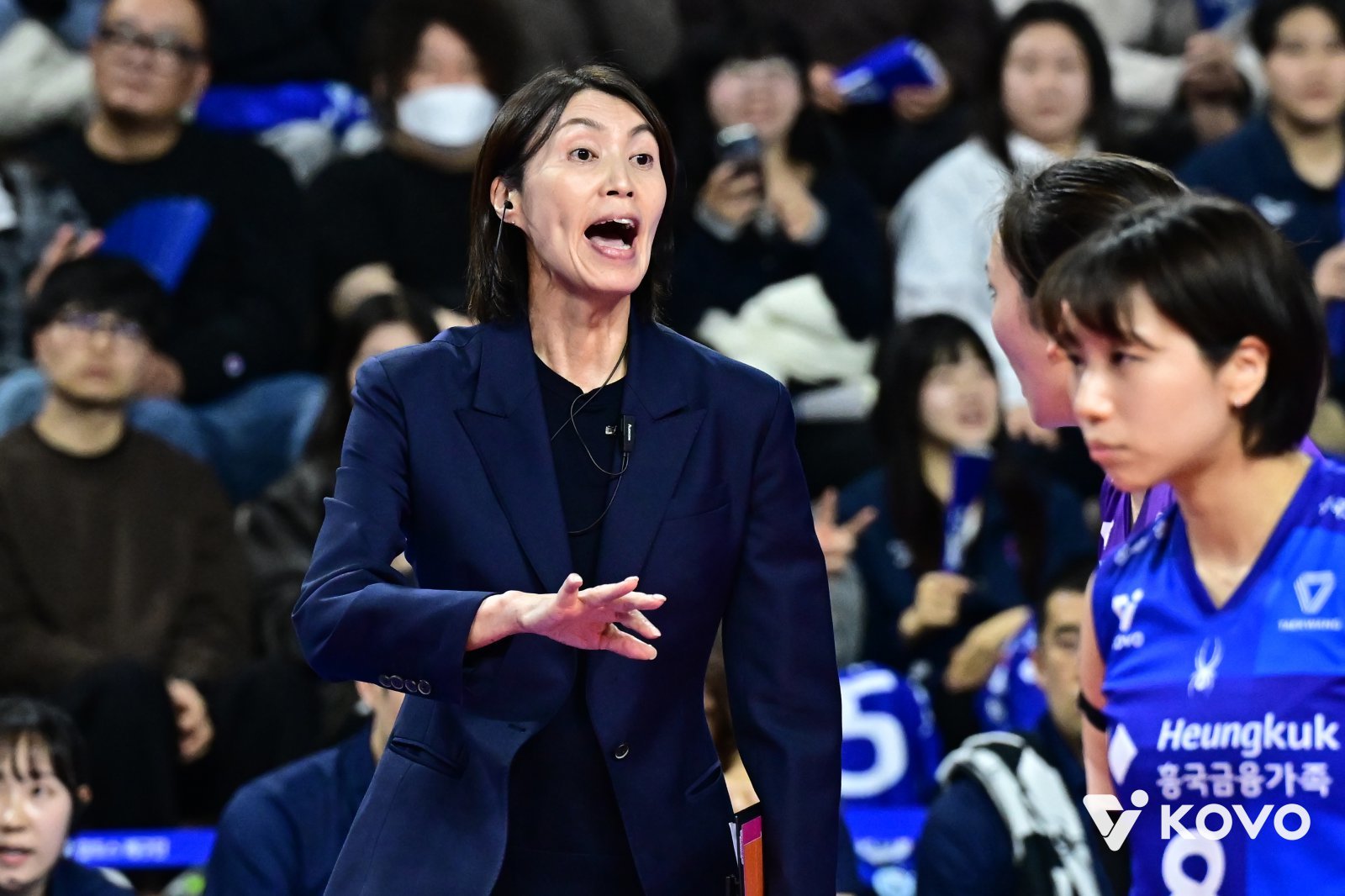 흥국생명은 이날 공격 성공률(32.75%)이 IBK기업은행(33.72%)에 밀린 탓에 고전을 거듭했다. 블로킹(11개)과 범실(21개)서 IBK기업은행(9개·28개)보다 앞서며 승리했지만 요시하라 감독은 기쁨보단 아쉬움이 컸다.