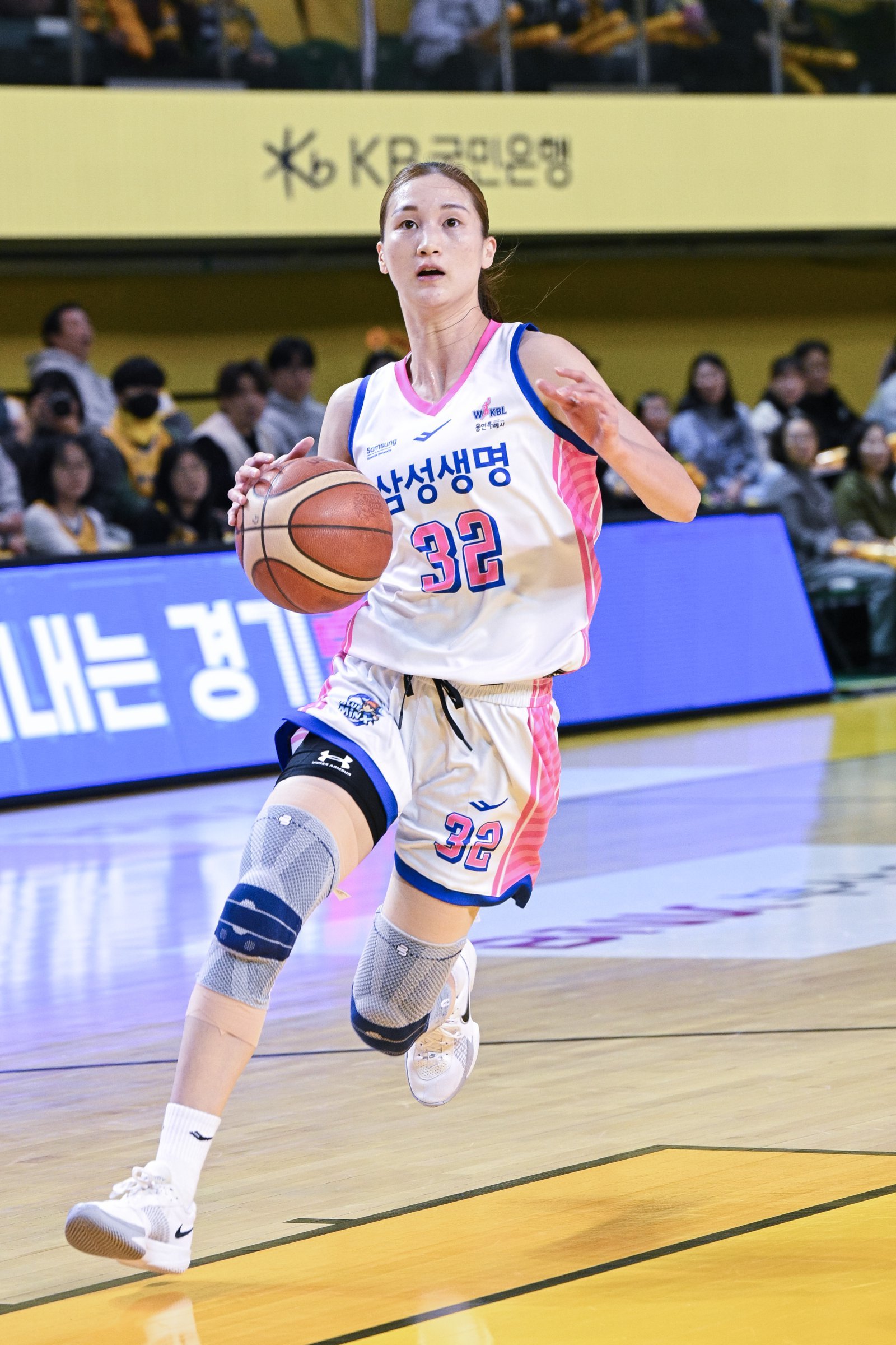 윤예빈은 19일 청주체육관에서 열린 ‘BNK금융 2025~2026 여자프로농구’ 4라운드 KB 스타즈와 맞대결에서 22점·4리바운드로 활약하며 74-61의 승리를 이끌었다. 삼성생명은 이날 승리로 WKBL 역대 두 번째로 팀 통산 500승을 거뒀다. 순위는 리그 5위(7승10패)다. 2연승이 마감된 KB스타즈는 리그 2위(9승7패)를 유지했다. 리그 선두(13승3패) 부천 하나은행과 격차가 ‘4’경기 차로 벌어졌다.
