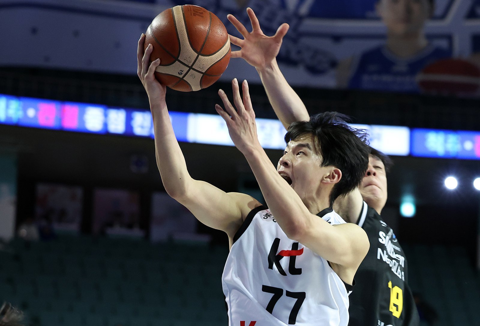KT 강성욱은 이번 시즌 입단한 신인 선수 중 유일하게 두 자릿수 득점을 기록 중이다. 그의 활약은 기존 선수들에게도 자극제가 된다는 게 문경은 감독의 평가다. 뉴시스