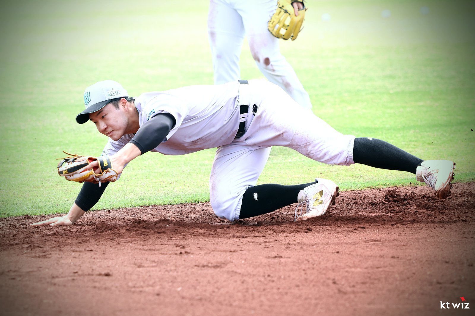 KT 허경민이 29일 호주 질롱 베이스볼 센터에서 열린 스프링캠프 도중 수비 훈련을 소화하고 있다. 사진제공|KT 위즈