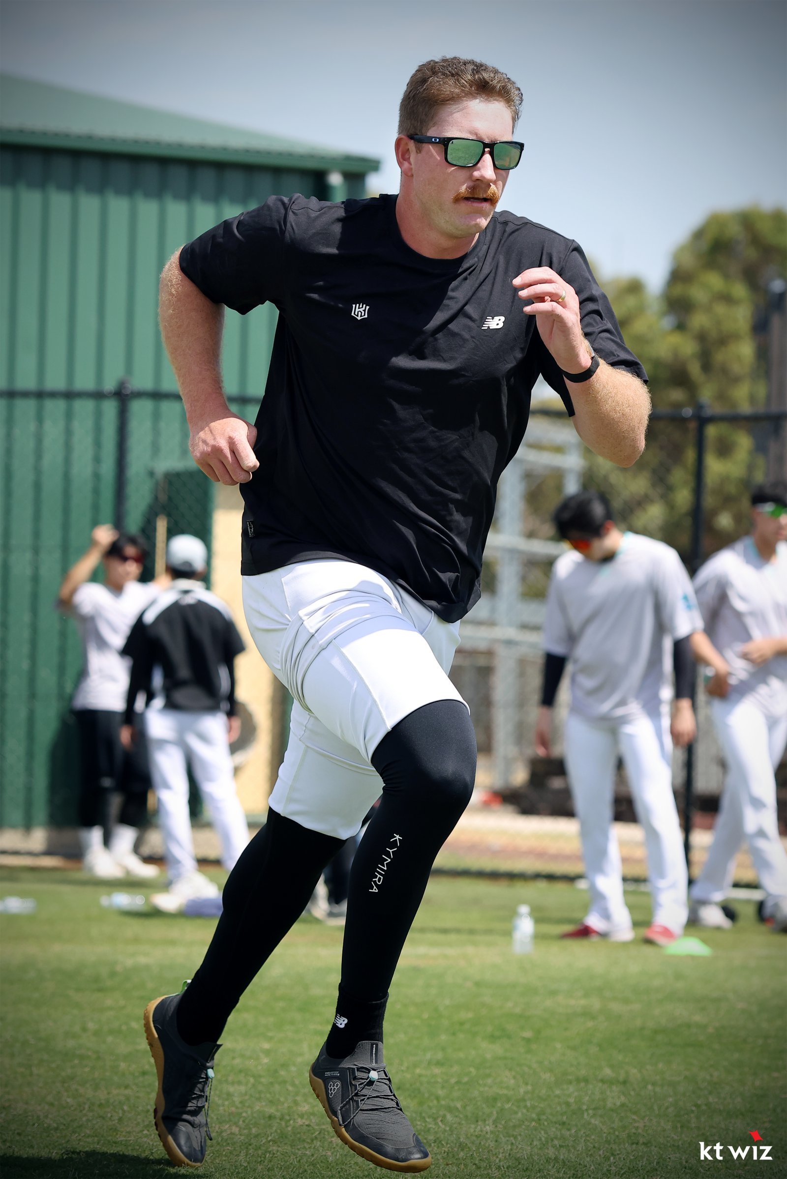 KT 외국인 투수 맷 사우어가 30일 호주 질롱 베이스볼 센터에서 열린 스프링캠프 도중 러닝 훈련을 소화하고 있다. 사진제공|KT 위즈