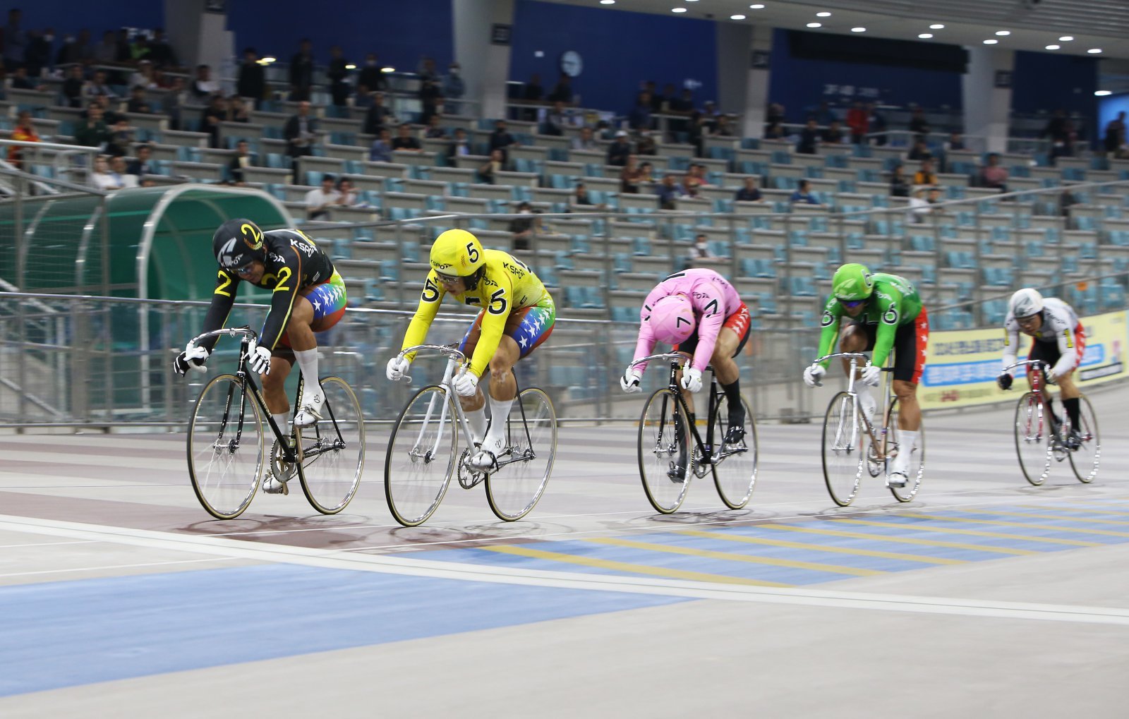 2026년 첫 대상경륜인 스피드온배 대상경륜이 13일부터 사흘간 광명광명스피돔에서 펼쳐진다. 특선급 경주에 나선 선수들이 결승선 앞에서 접전을 벌이고 있다. 사진제공 | 국민체육진흥공단