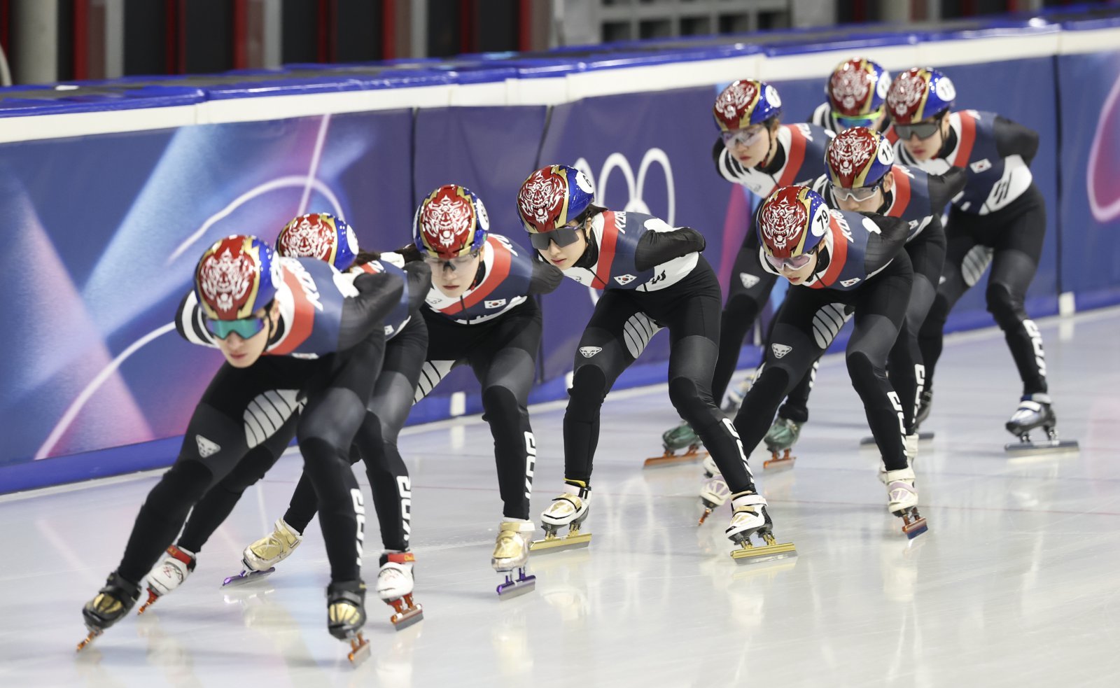 쇼트트랙대표팀 선수들이 7일(한국시간) 밀라노아이스스케이팅아레나에서 훈련을 하고 있다. 밀라노ㅣ뉴시스