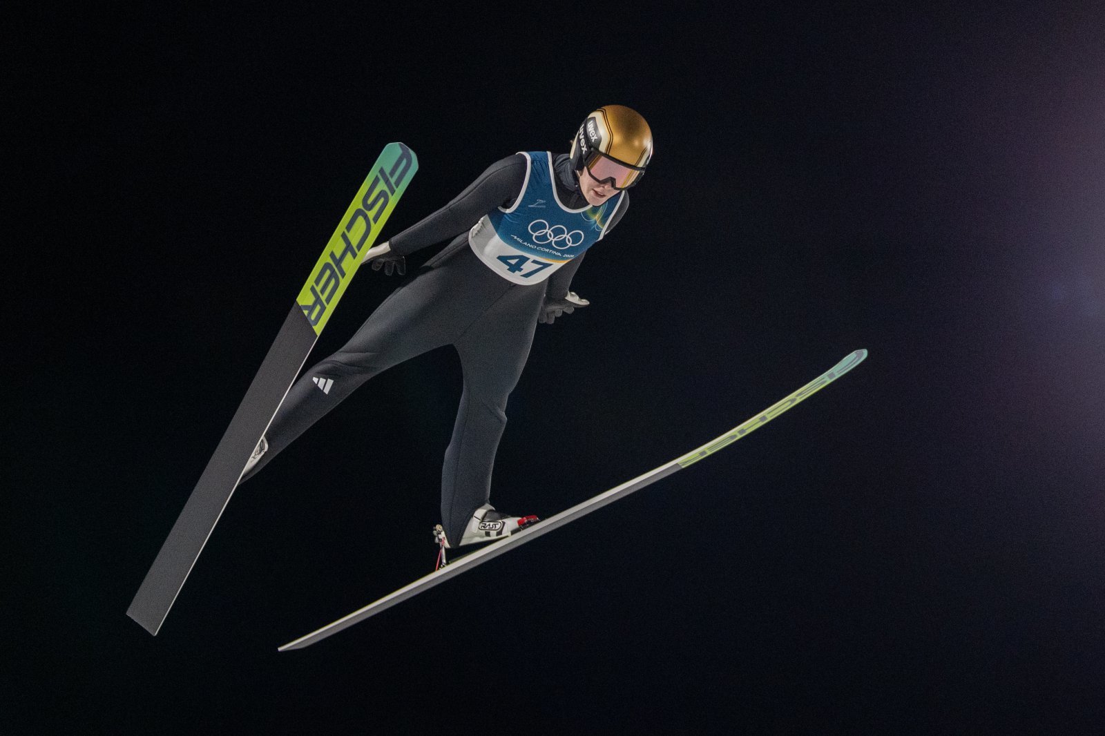 노르웨이 스키점프대표팀 안나 오딘 스트룀이 8일(한국시간) 이탈리아 프레다초 스키점프장서 열린 2026밀라노·코르티나담페초동계올림픽 스키점프 여자 개인전 노멀힐 결선서 점프를 하고 있다. 프레다초|신화 뉴시스