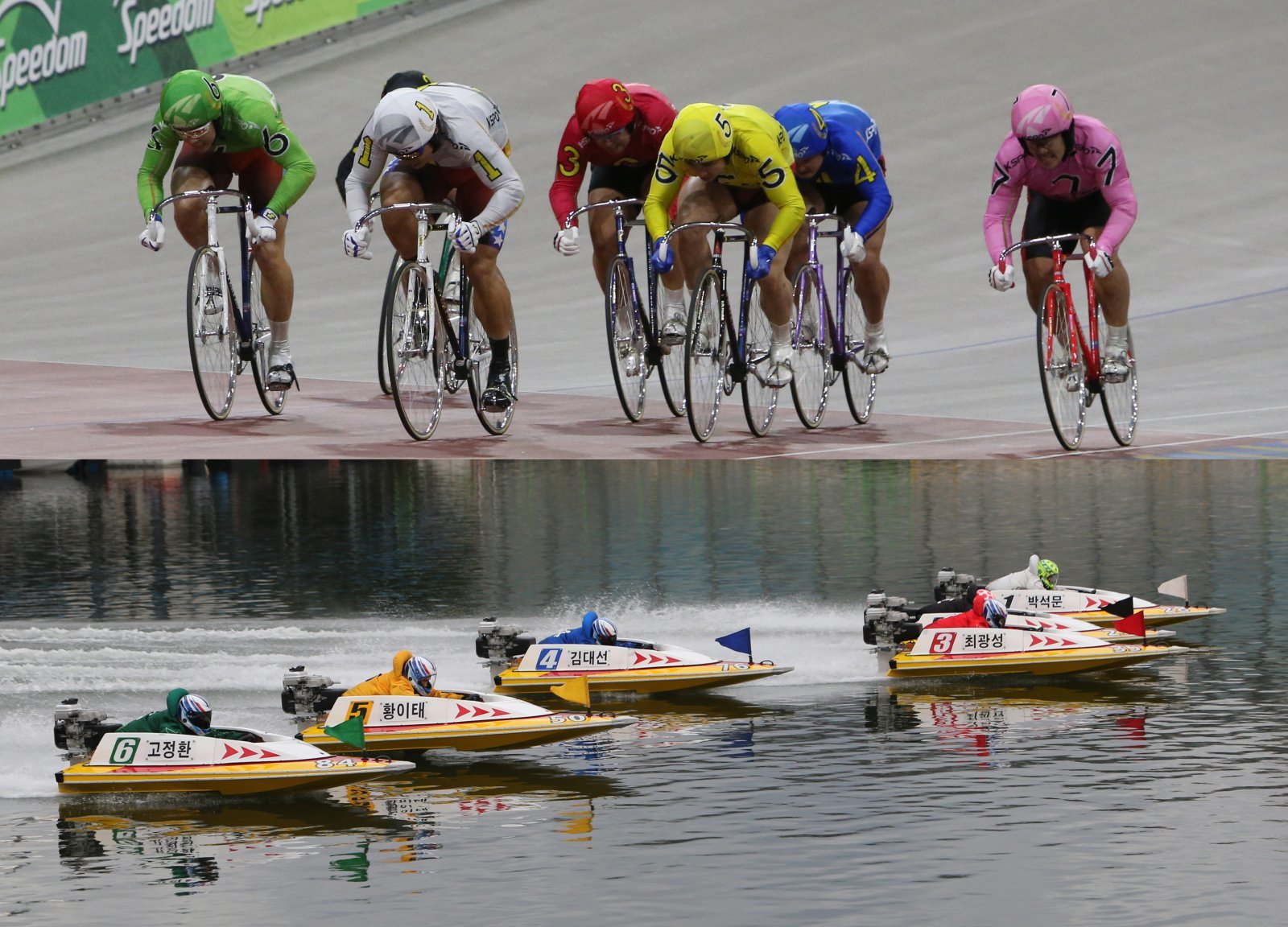 광명스피돔에서 열리는 경륜과(위 사진)와 미사경정장에서 열리는 경정 모습.