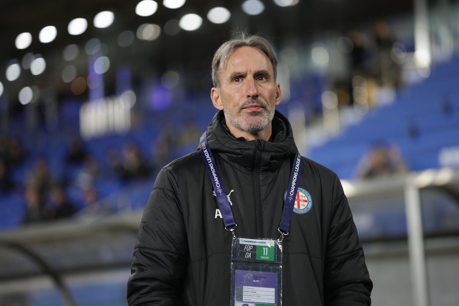 멜버른 시티 아우렐리오 비드마 감독이 11일 울산문수경기장서 열린 울산과 원정경기 도중 그라운드를 바라보고 있다. 사진제공|한국프로축구연맹