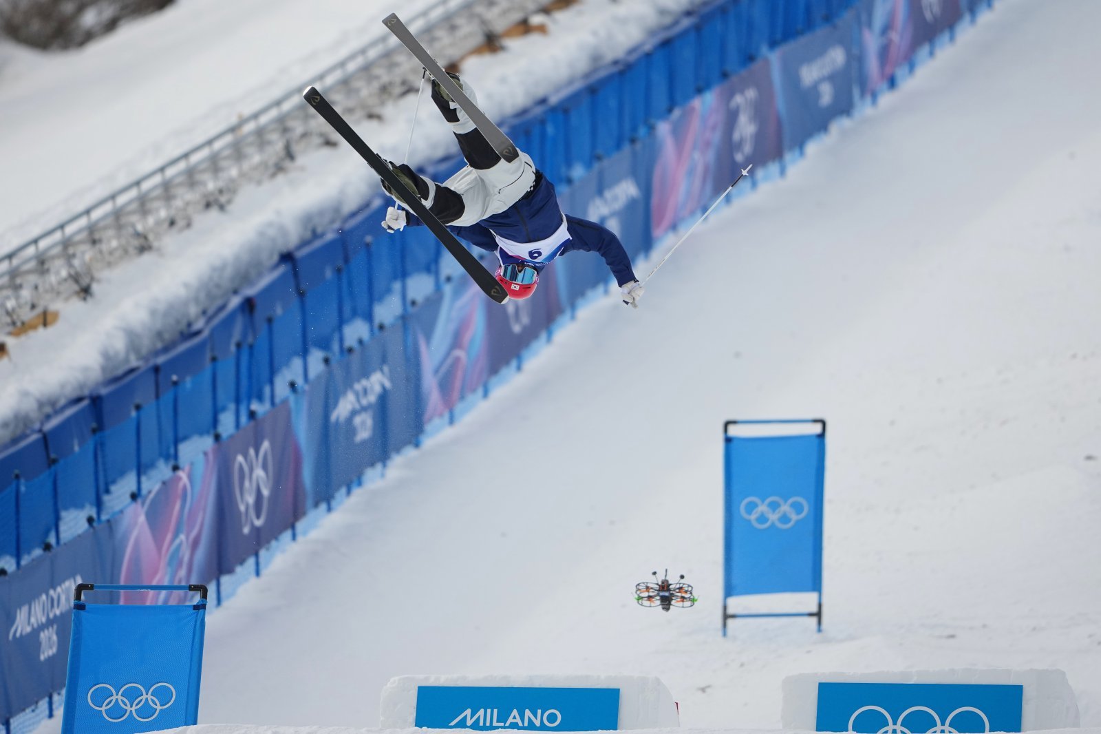 정대윤이 12일(한국시간) 리비뇨 에어리얼·모굴 파크에서 열린 프리스타일스키 남자 모굴 2차 예선에서 4위를 차지해 결선 무대를 밟게 됐다. 10일 1차 예선서 공중 연기를 펼치는 정대윤. 밀라노ㅣAP뉴시스