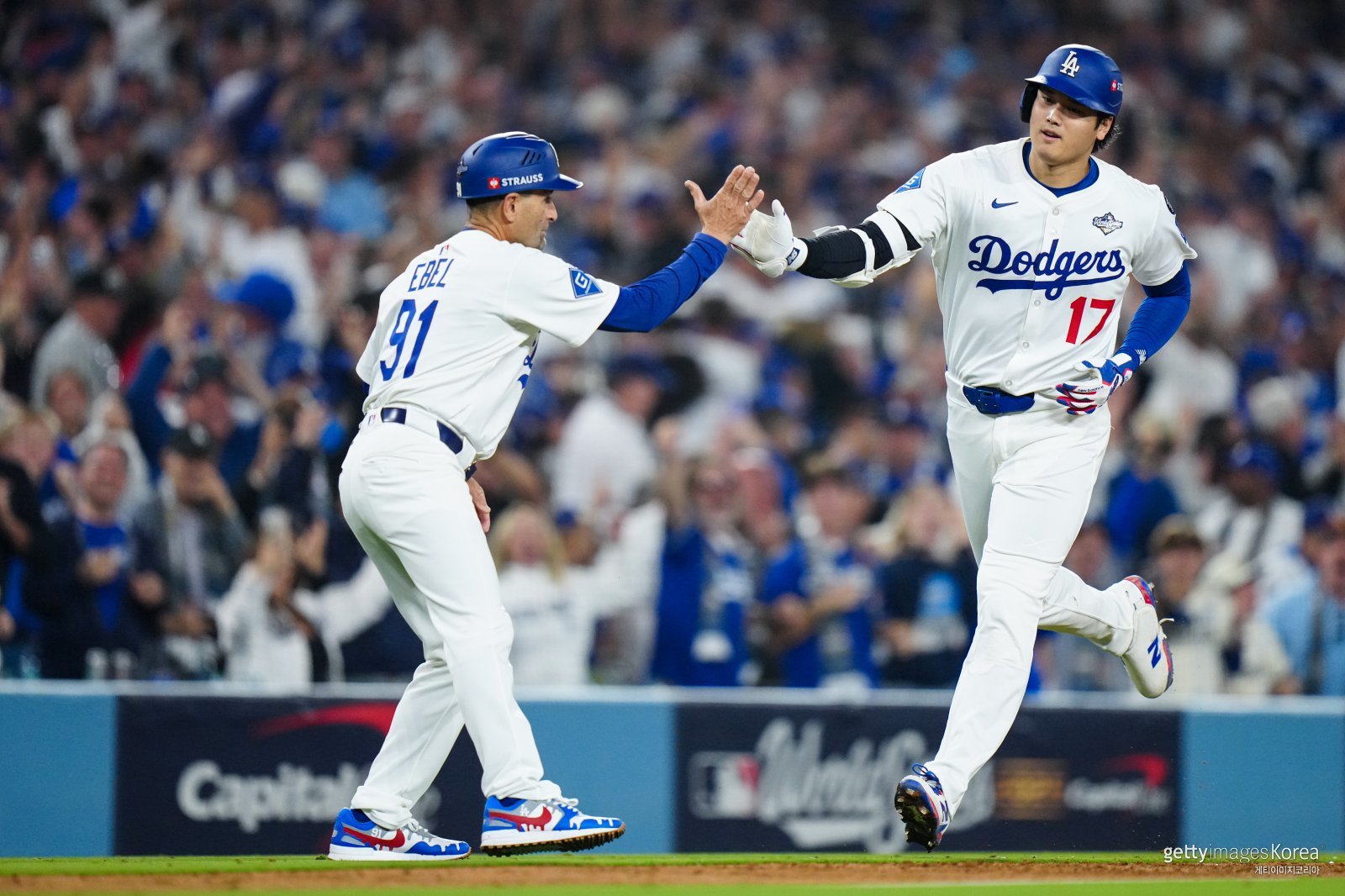 3루 주루코치와 하이파이브 하는 오타니 쇼헤이. 사진=게티이미지코리아