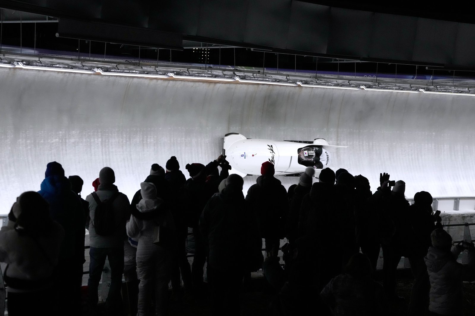 석영진-채병도가 18일(한국시간) 이탈리아 코르티나담페초 코르티나 슬라이딩 센터에서 열린 2026 밀라노·코르티나담페초동계올림픽 봅슬레이 남자 2인승 경기에서 결승선을 통과하고 있다. 석영진 팀은 1~4차 시기 합계 3분44초61로 19위를 기록했다. 코르티나담페초|AP뉴시스