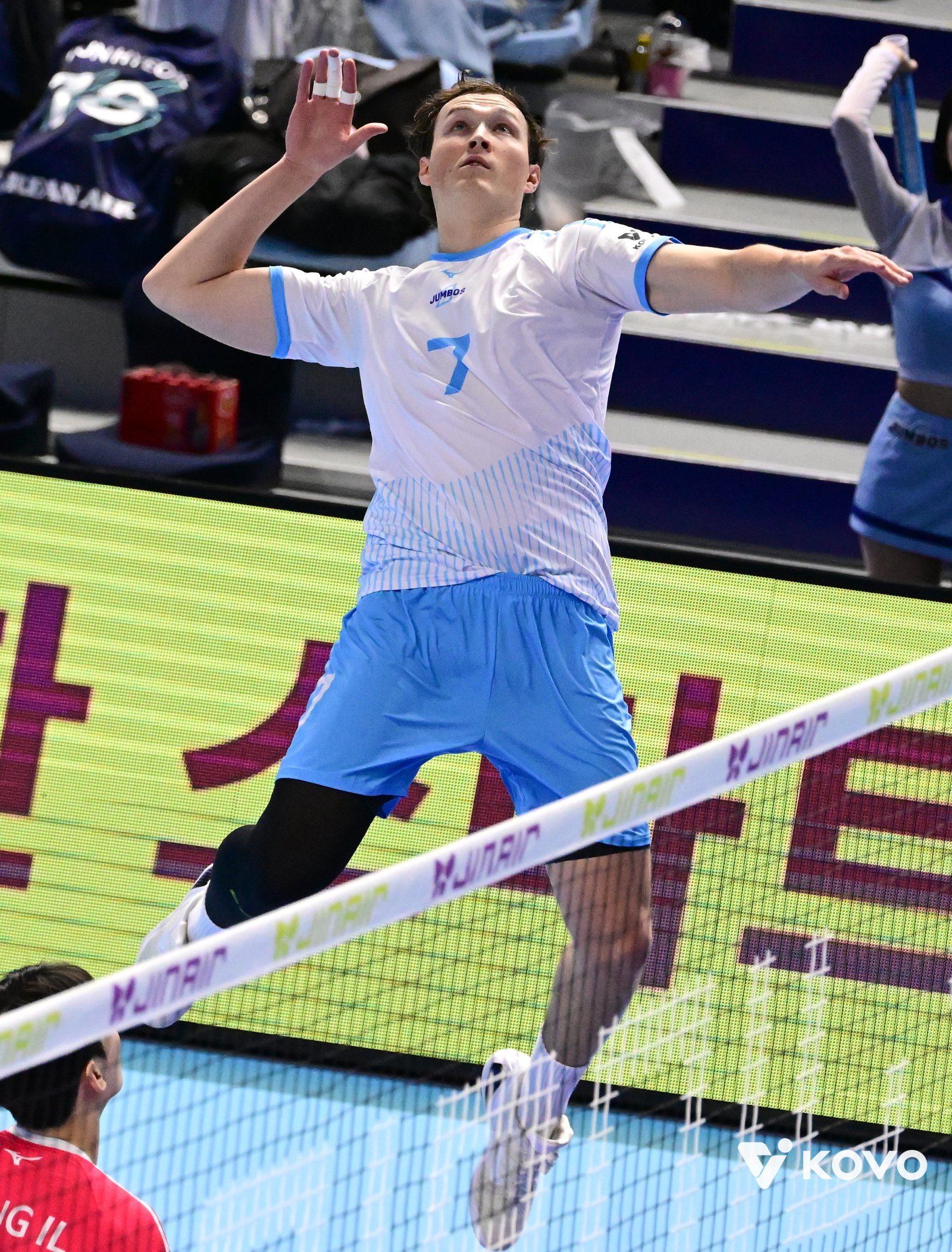 대한항공은 아시아쿼터 아웃사이드 히터(레프트) 게럿 이든 윌리엄(등록명 이든)이 첫 선발출전 경기서 13득점을 뽑는 기대 이상 활약을 펼치며 팀 승리에 앞장섰다. 지난달 23일 아시아쿼터 리베로 이가 료헤이(일본) 대신 영입된 그는 동료들과 호흡이 맞지 않아 웜업존을 전전했지만 이날 데뷔 4경기 만에 잡은 선발기회서 헤난 달 조토 감독의 기대에 응답했다. 아포짓 스파이커(라이트) 카일 러셀(20득점)과 대각 아웃사이드 히터 정지석(13득점)의 부담이 크게 줄어든 대한항공은 디미타르 디미트로프(14득점)와 전광인(10득점)이 분전한 OK저축은행을 2연패로 몰아넣었다.