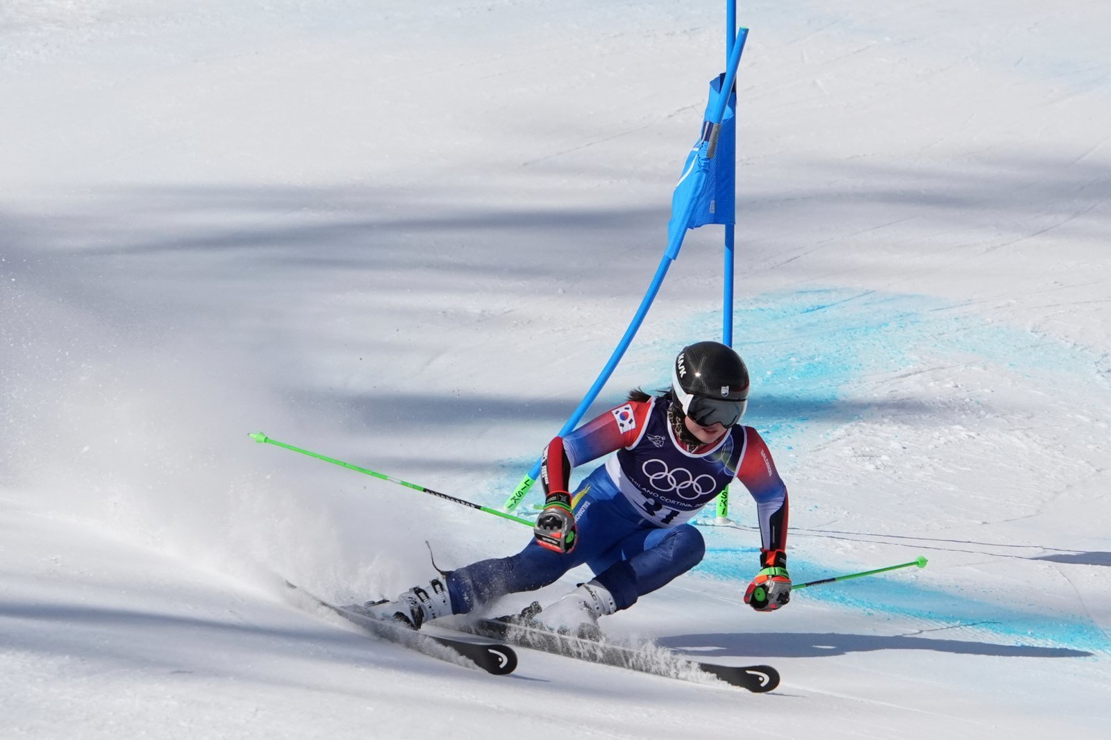김소희가 15일(한국시간) 2026동계올림픽 알파인스키 여자 대회전 1차 시기서 레이스를 펼치고 있다. 코르티나|AP뉴시스