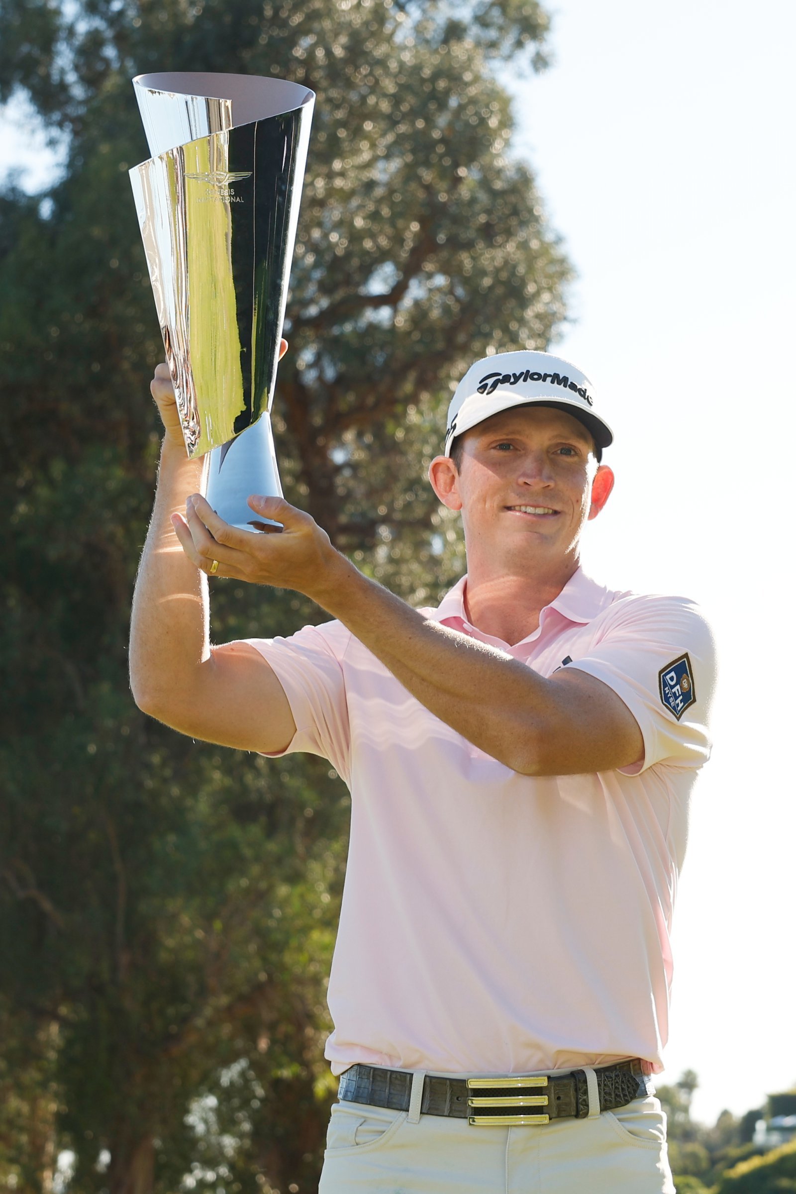 제네시스 인비테이셔널에서 데뷔 첫 승 기쁨을 누린 제이콥 브리즈먼이 챔피언 트로피를 들고 환하게 웃고 있다. LA | AP뉴시스