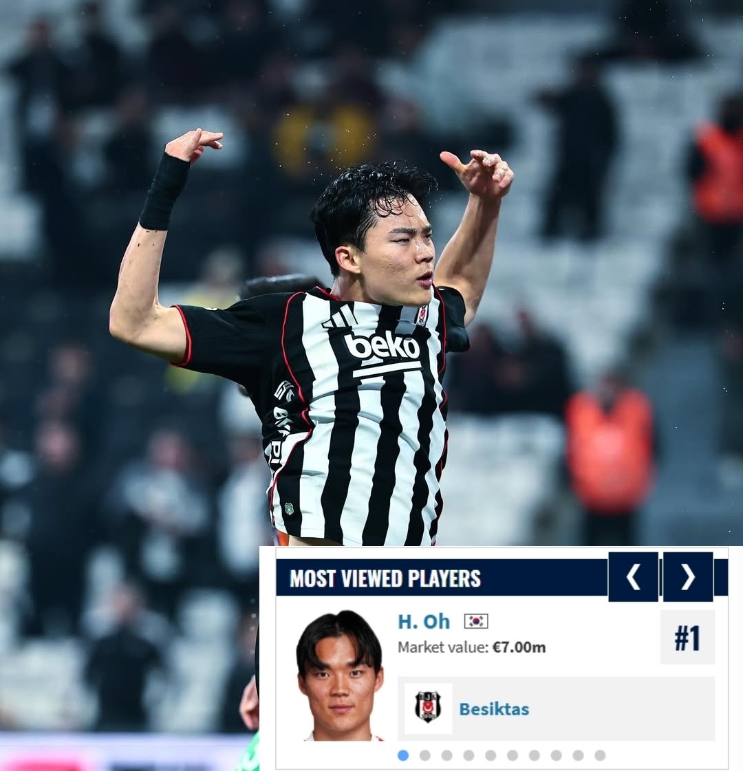 오현규가 베식타스 임대 이적 직후 3경기 연속골을 터트리며 주가를 높이고 있다. 축구통계전문 매체 트란스퍼 마르크트의 23일(한국시간) 기준 사이트 내 최다검색 선수에 오른 오현규(작은 사진). 사진출처|오현규 인스타그램·트란스퍼 마르크트 갈무리