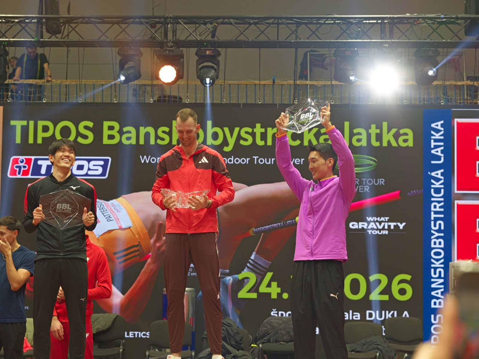 우상혁은 25일(한국시간) 슬로바키아의 두클라 스포츠 홀에서 벌어진 2026반스카비스트리차 실내도약육상경기대회 남자 높이뛰기 결선서 2m30의 기록으로 동메달을 목에 걸었다. 금메달과 은메달은 각각 얀 스티펠라(2m32)와 시노 도모히로(2m30)에게 돌아갔다. 시노는 우상혁과 기록이 같았지만 2m30을 통과하는 시기(시노 2차-우상혁 3차)서 앞섰다.
