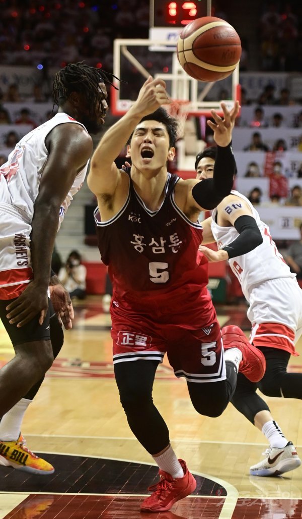5일 안양종합운동장 실내체육관에서 열린 ‘2022-2023 SKT 에이닷 프로농구’ 챔피언결정전 6차전 안양 KGC와 서울 SK의 경기에서 KGC 변준형이 드리블 돌파 과정에서 볼을 놓치고 있다.